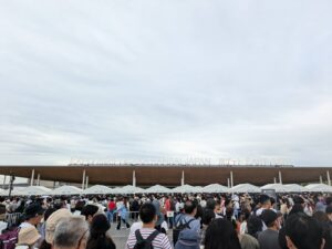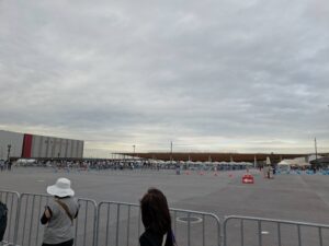 結局8:00前に夢洲駅着を目安に出発しました。会場に着いたときの様子はこんな感じでした↓